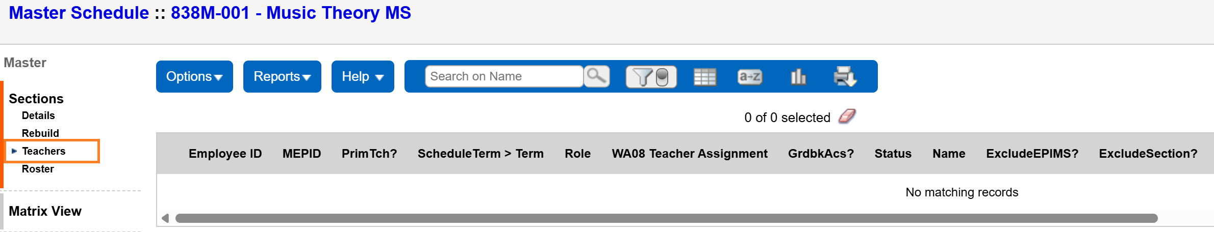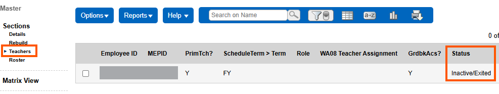 Per state reporting requirements, all reportable sections require an active teacher with a MEPID (Massachusetts Education Personnel ID) assigned to each class.