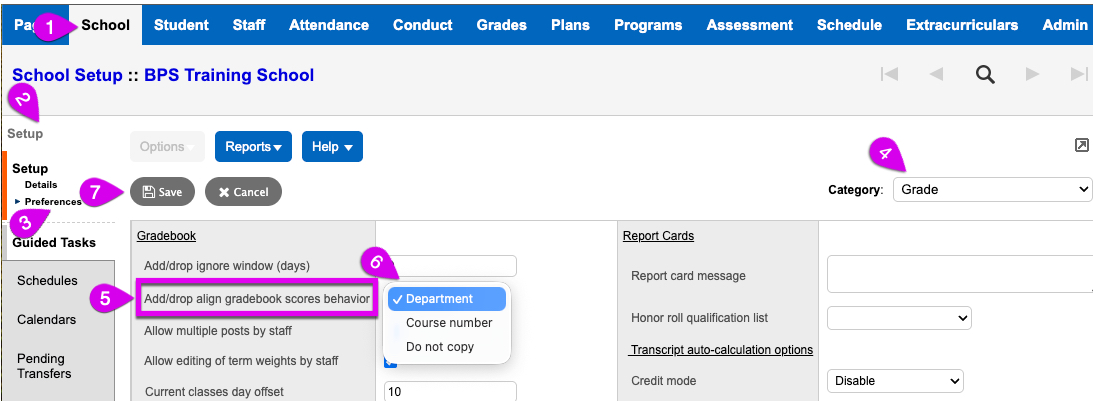 - Manual Merge: If you accidentally dropped a student one day and added them the next, go to Grades > Transcripts. Select the two records, go to Options > Merge Drop/Adds.