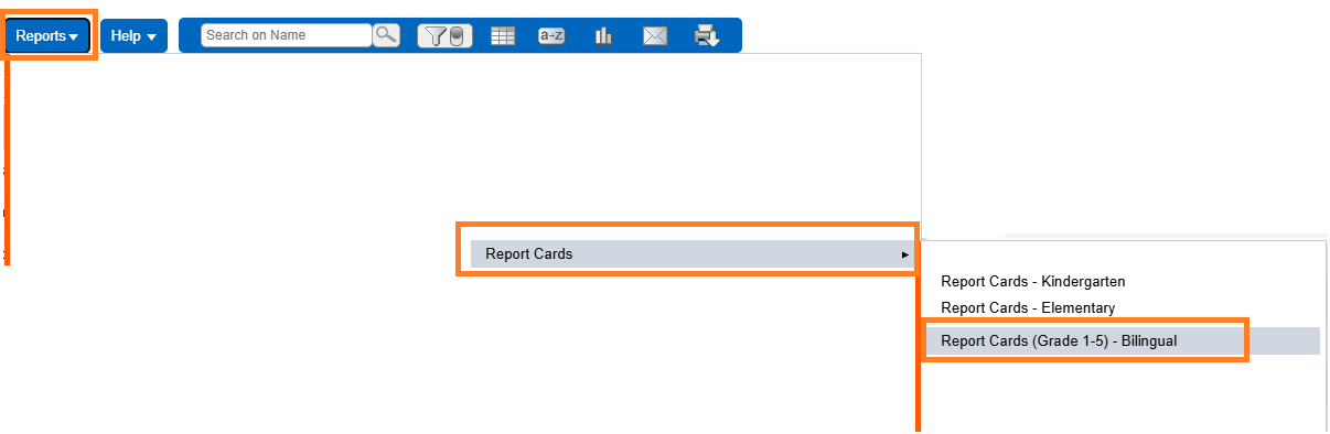 - Click Reports > Report Cards > Report Cards (Grade 1-5) - Bilingual