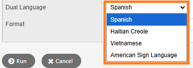- Select the Dual Language, from the drop downThis will change the header in the Column next to Eng to the language (SP, HC, VN, ASL)